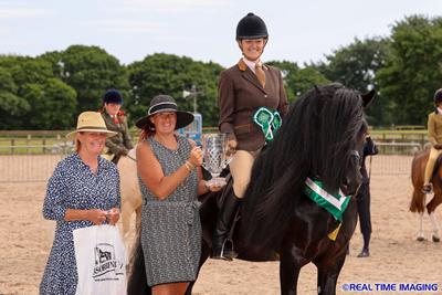SEAMOOR LADY DERBY with sponsor Penny Clifford presenting the 'Jim McTiffin Memorial Trophy. The winner also received a 'Show Pony Prep Gift Bag'. THE 'PEARSON FAMILY' INTERMEDIATE CHAMPION
